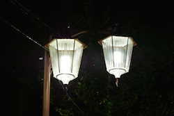 普通の街灯よりも気持ち多めの光を放つような気がする街灯。茶色い街棒が個性を際立たせる。いや本当、こういう個性あると筆者として助かりますね!
